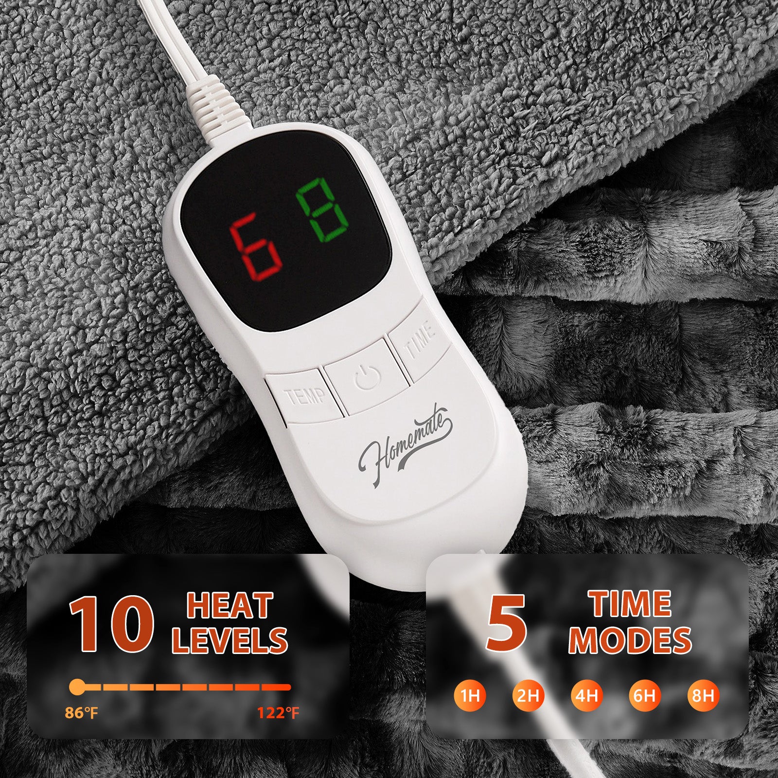 Offers 10 customizable heat levels and a temperature range of 86–122°F, with a 1–8 hour auto shut-off for peace of mind.