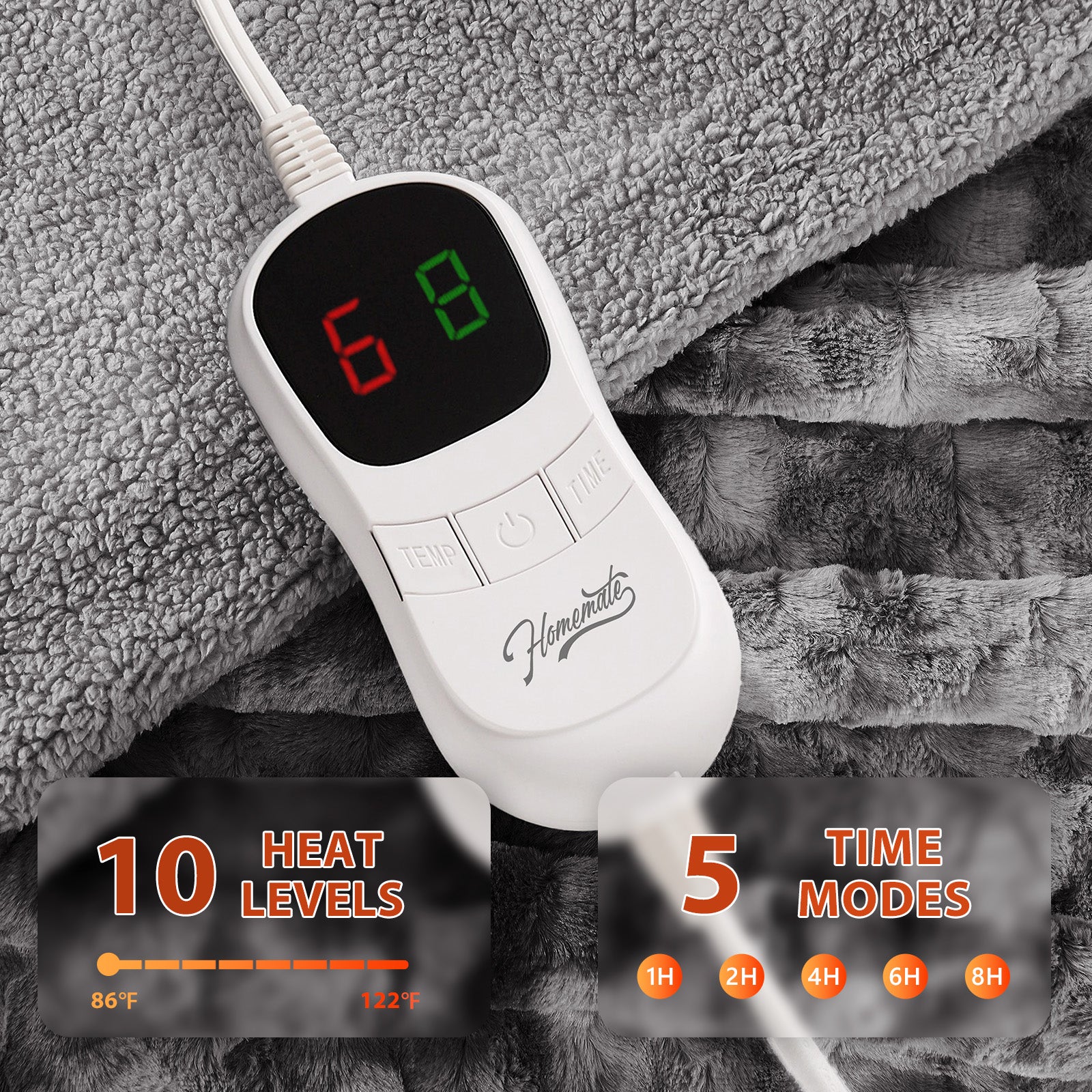 Choose from 10 heat levels (86–122°F) and 1–8 hour auto shut-off settings. Customize your perfect warmth with ease and confidence.