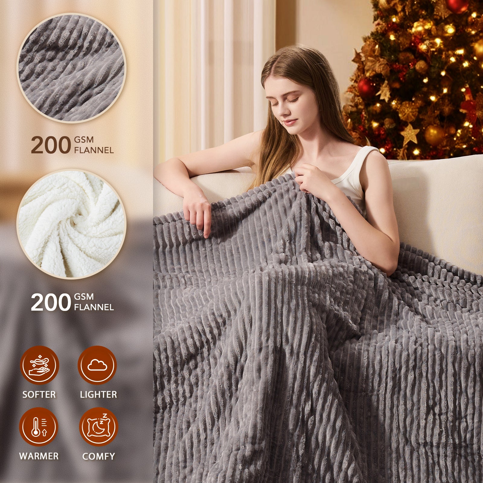 Experience ultimate coziness with 200gsm flannel on one side and 200gsm sherpa on the other — luxuriously soft, extra thick, and warm even without electricity.