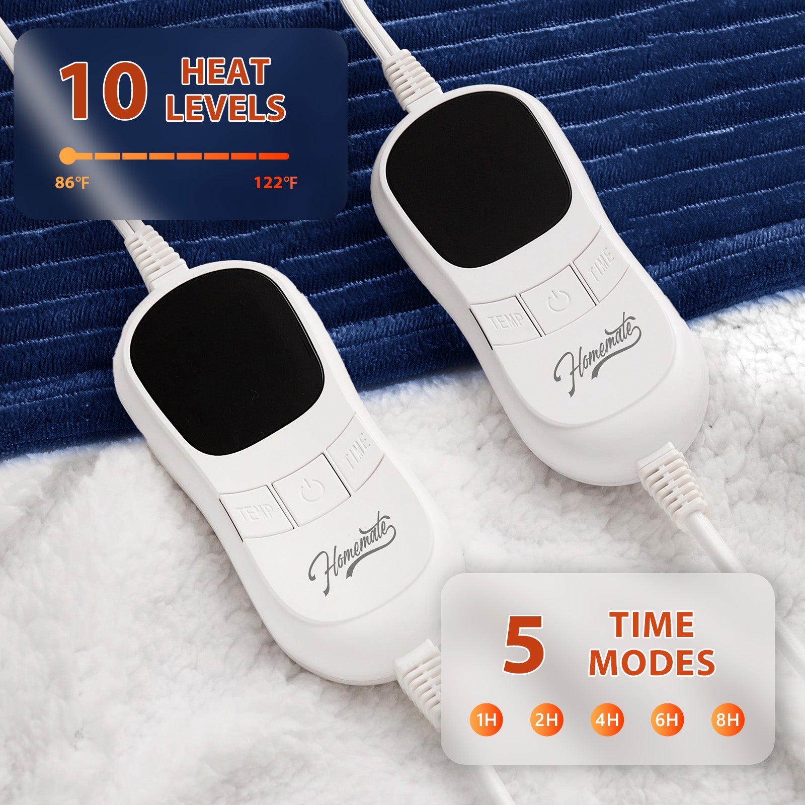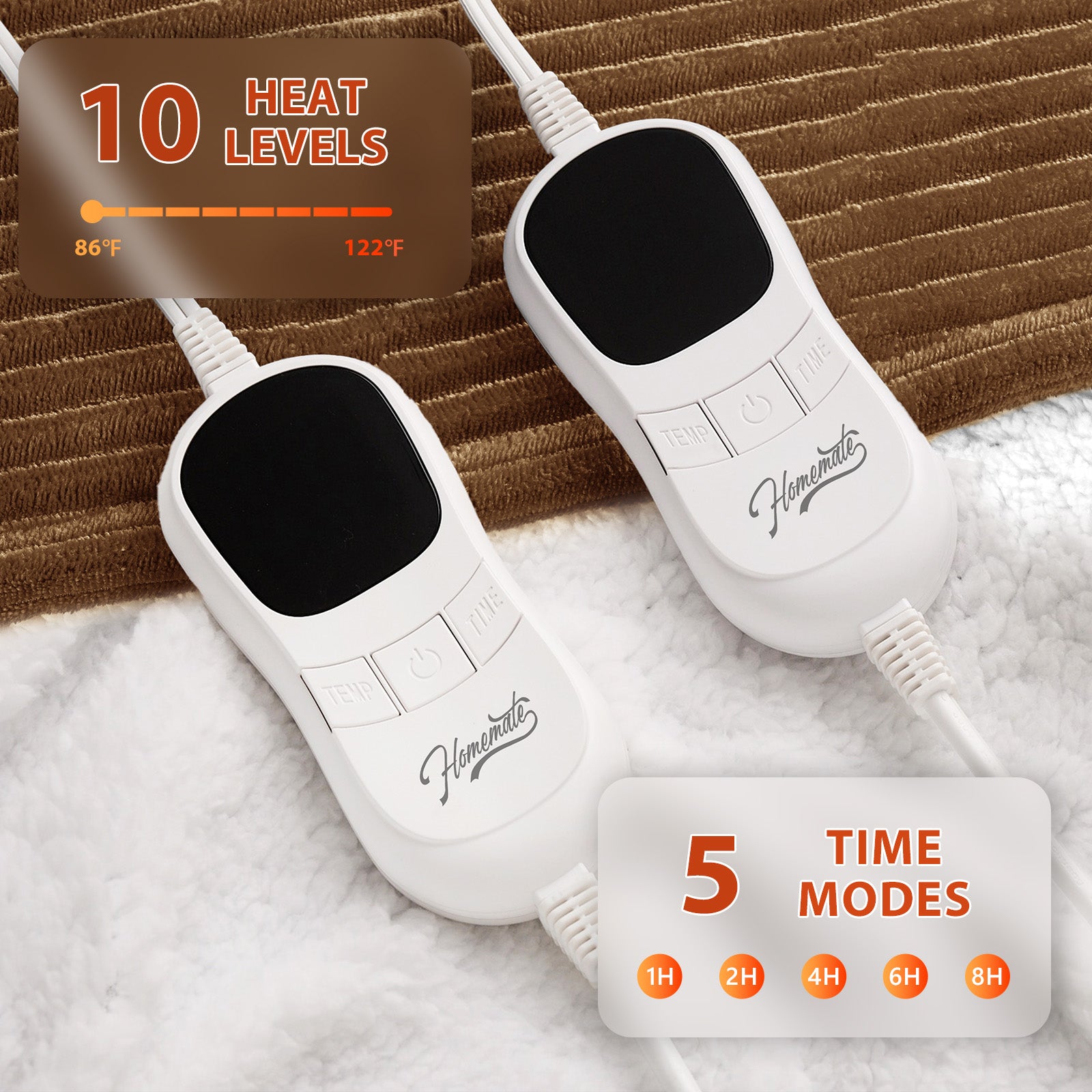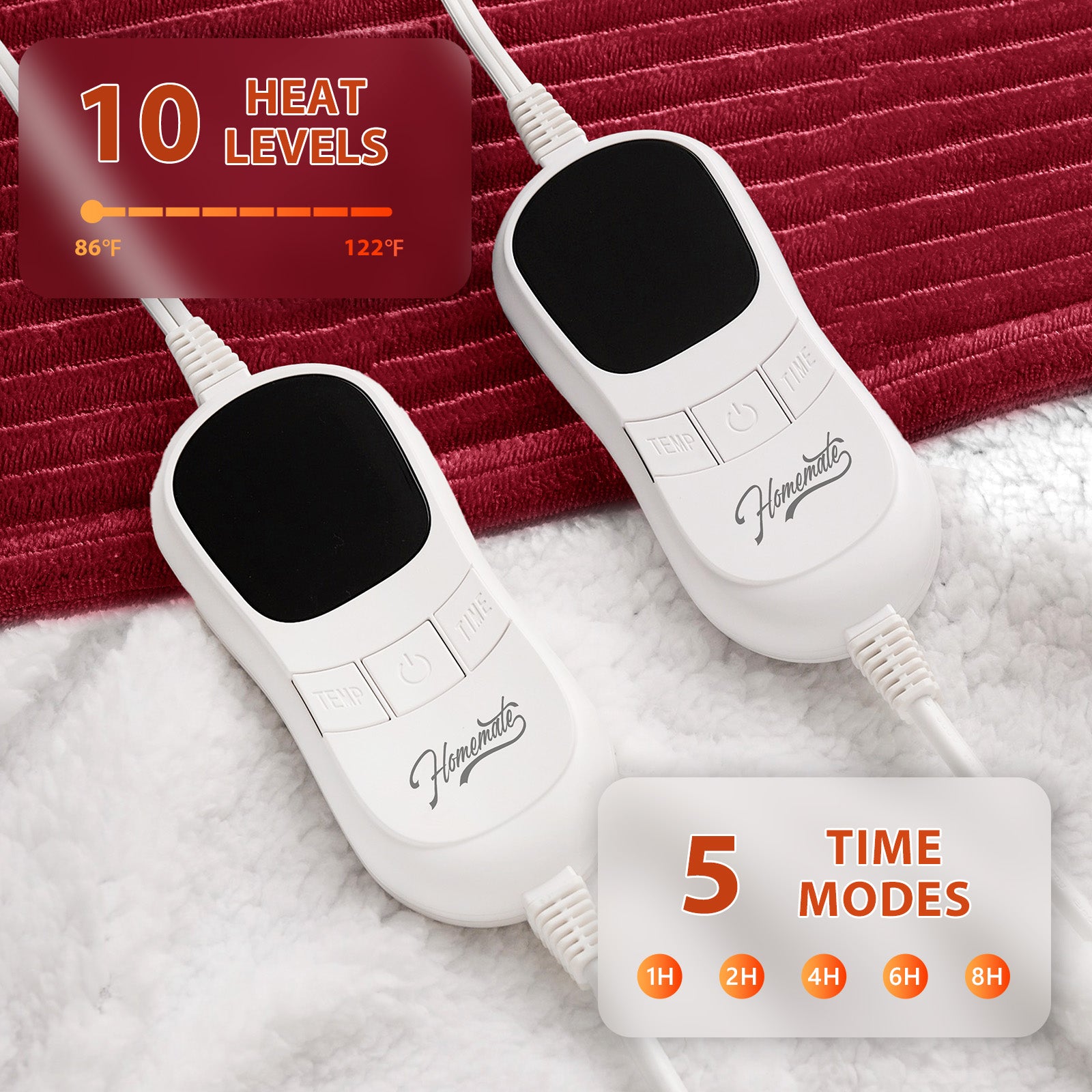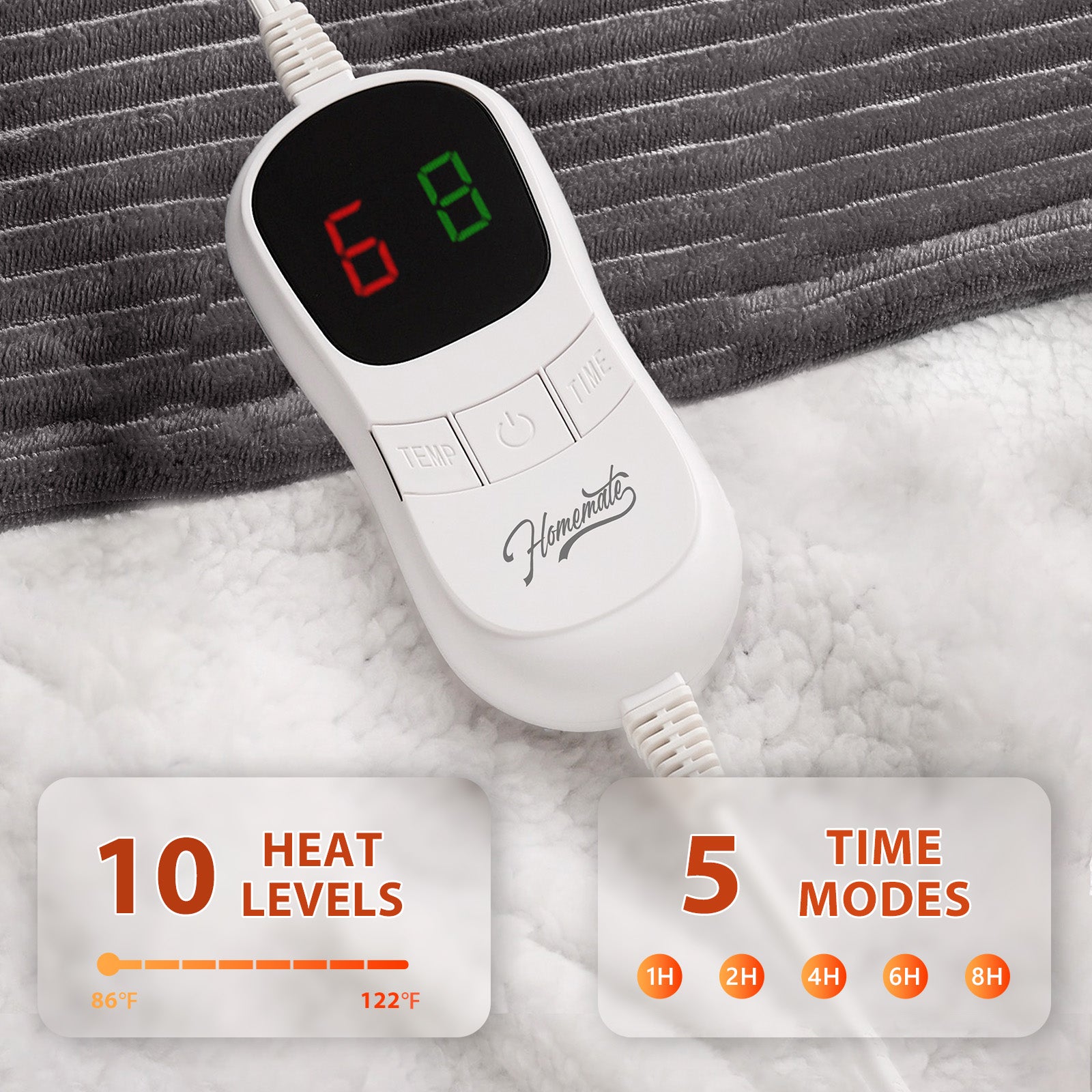 Offers 10 customizable heat levels and a temperature range of 86–122°F, with a 1–8 hour auto shut-off for peace of mind.