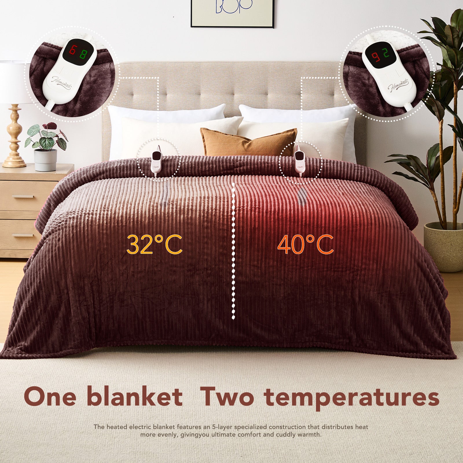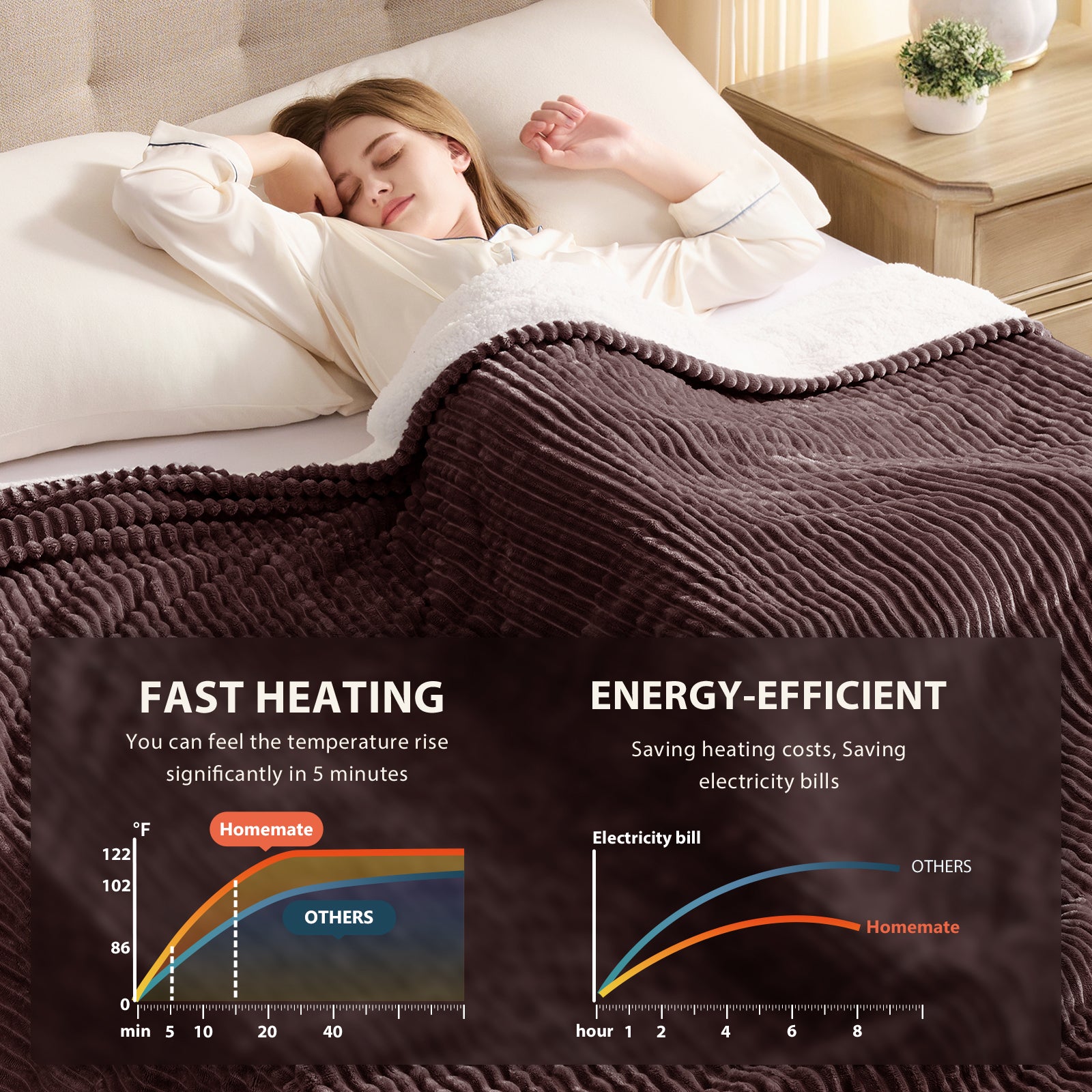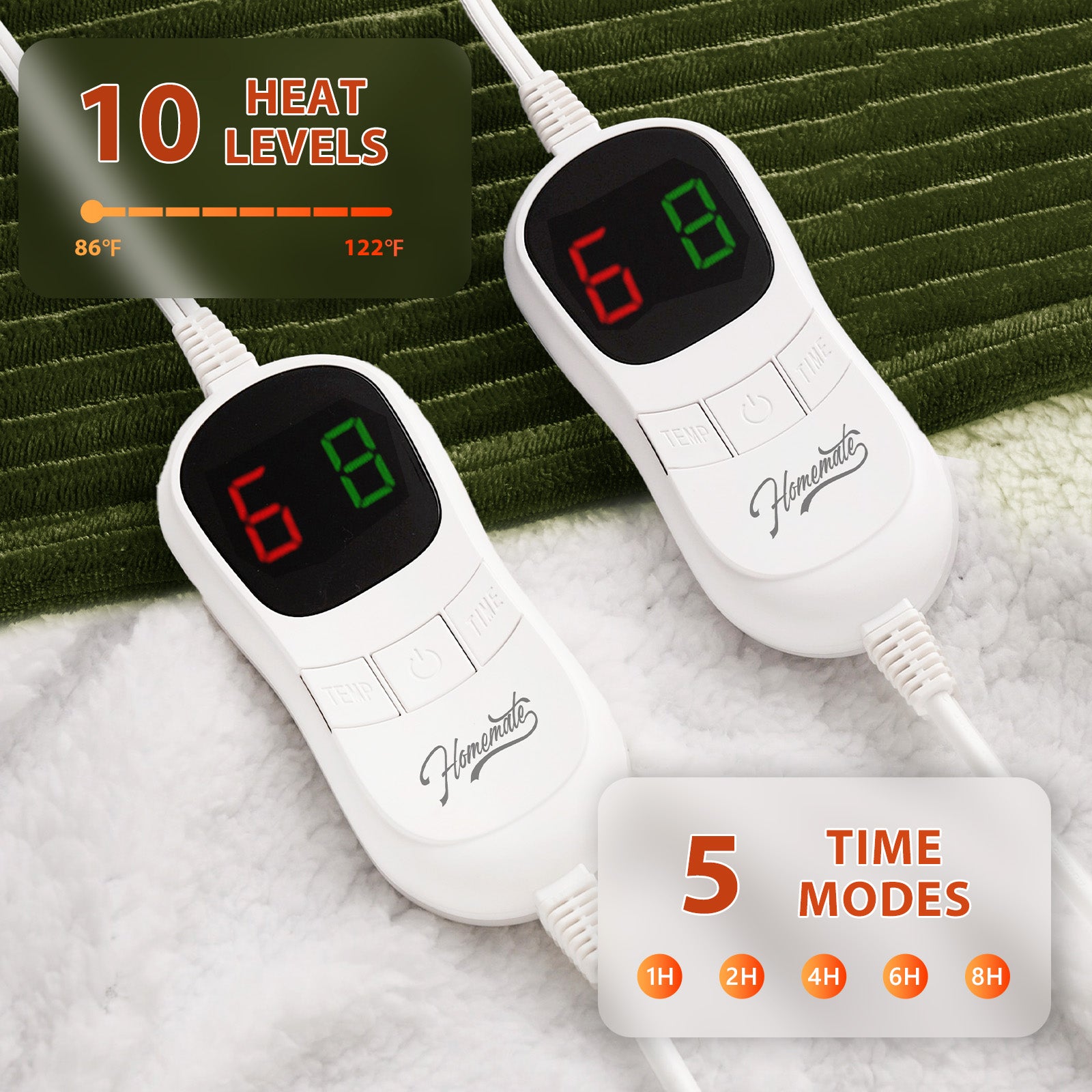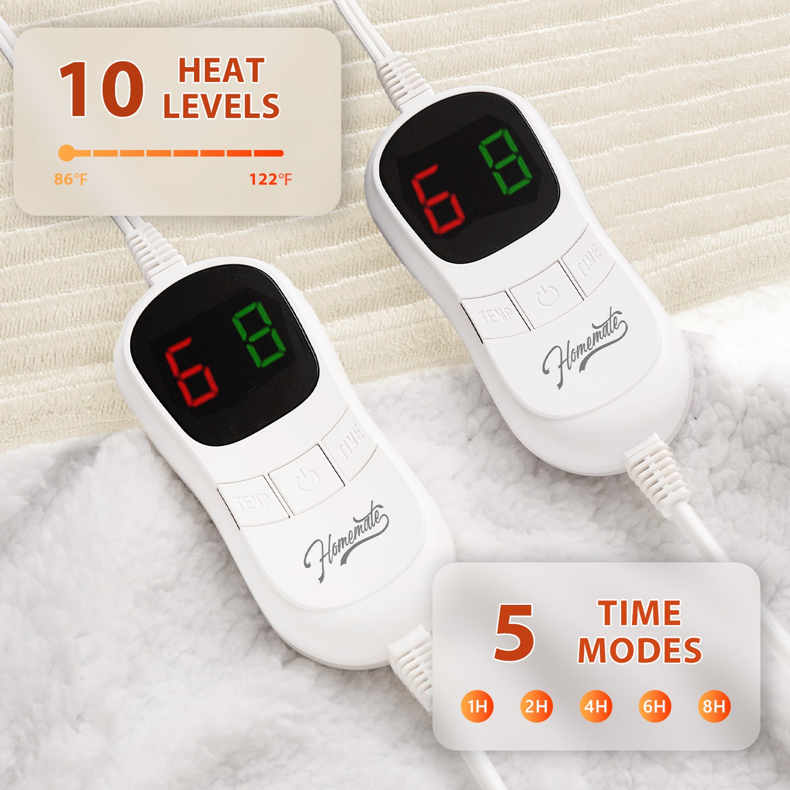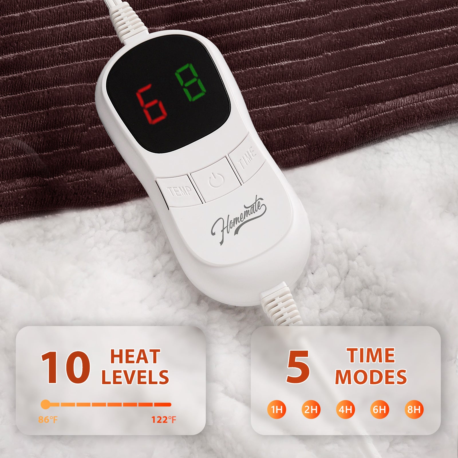 This electric throw blanket exceeded my expectations! It is super soft, cozy, and looks luxurious with the faux fur and sherpa design. The size 50”x60” is perfect for snuggling on the couch or reading a book.I love that it has 10 heat levels, so you can choose the perfect temperature for any weather. The timer with auto shut-off (1/2/4/6/8 hours) makes it very convenient and safe, and the overheat protection gives extra peace of mind. It heats up quickly and evenly, creating a warm and relaxing feeling.